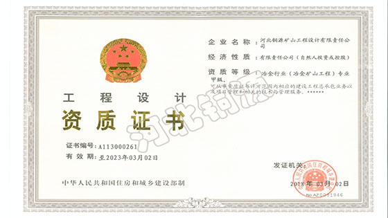公司业务以金属非金属矿山、选矿厂、排土场、尾矿库等矿山工程设计、技术咨询、技术服务、工程总承包等为主,公司持有冶金矿山工程甲级设计资质证书及甲级咨询资质证书、建材非金属矿及原料制备工程乙级设计资质证书和丙级咨询资质证书。公司按照GB/T19001-2016标准的要求建立质量管理体系,并通过ISO9001质量认证。